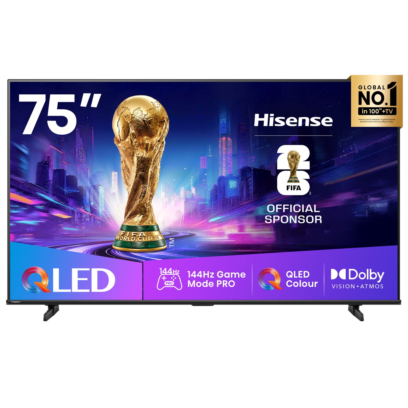 With true 4K Ultra HD resolution (3840×2160), the Hisense 75Q7Q offers exceptional clarity enhanced by Dolby Vision, HDR10+, and a 4K AI Upscaler that sharpens lower-resolution content. The 144Hz refresh rate with Variable Refresh Rate (VRR) ensures ultra-smooth motion for sports, movies, and gaming. Additionally, Dolby Atmos audio creates a rich, immersive sound experience that fills the room. As a result, every scene feels lifelike and engaging.